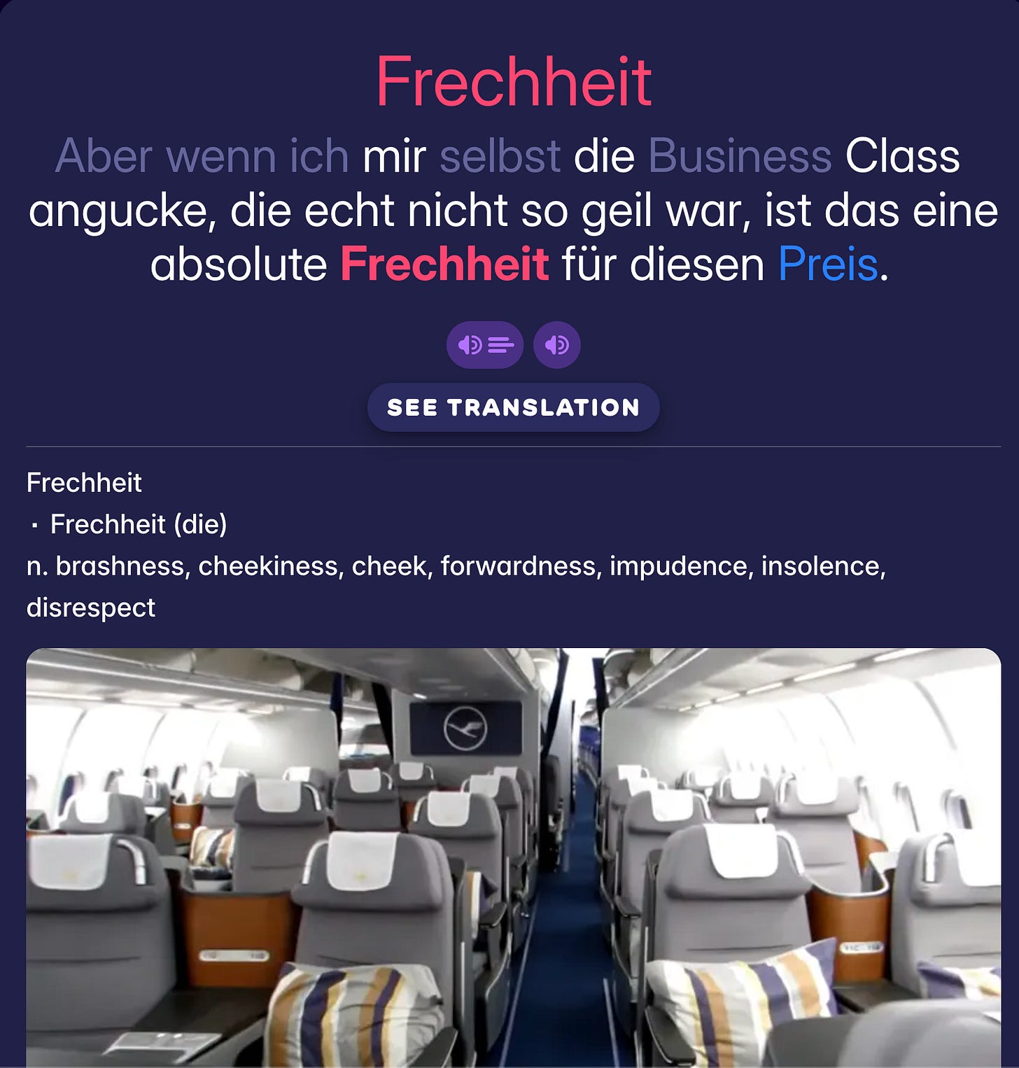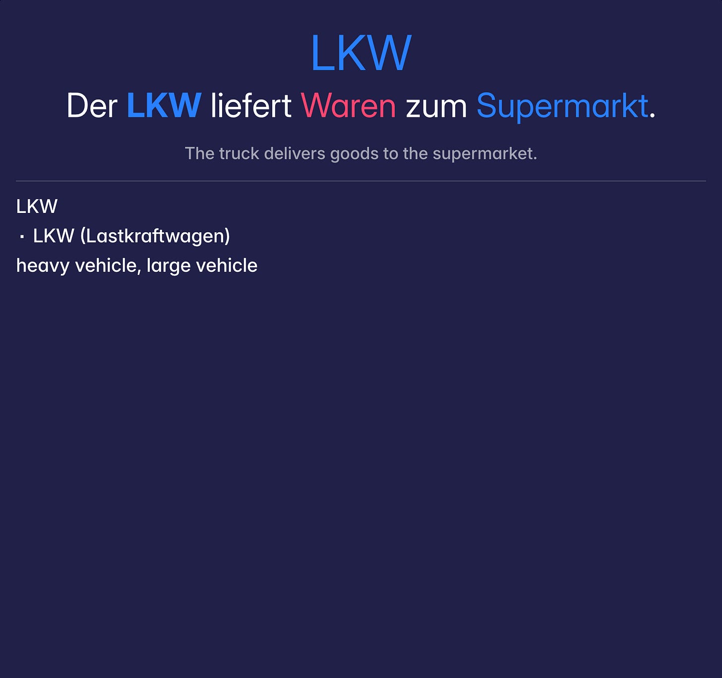 A word I noted down in a German lesson and later had ChatGPT generate an example sentence for: